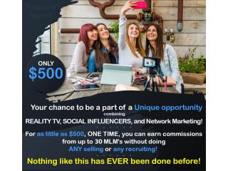 Social Media (Influencers) and MLM world together and for a limited time you can get involved. There's no selling, no product knowledge, no recruiting and there's no real time commitment to earn money.